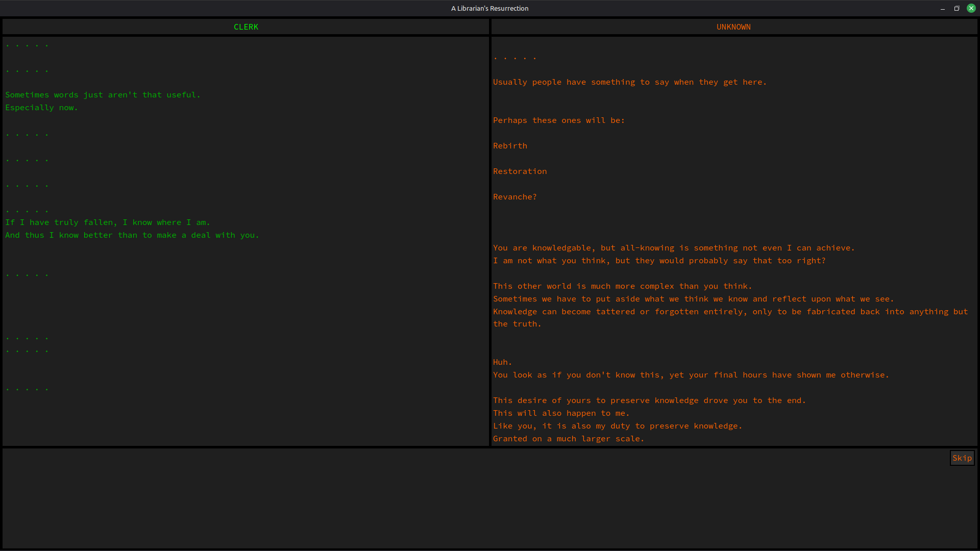You are a librarian who has a passion for preserving the knowledge and books which contribute to your community. When killed by those who detest the knowledge you're spreading for their own personal gain, you are introduced to a godlike entity who claims to share your passion. This entity has granted you the ability to "backup" future knowledge, in the form of computer data. The entity makes this easier for you by creating a virtual world around you that looks like a physical library. You now will learn the other abilities you have and backup the records which others intend to destroy.